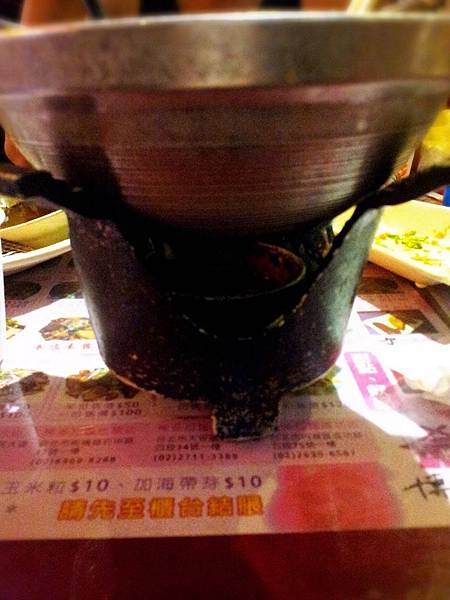 金架就甘心的是,如果你是長髮或是頭髮會垂落在臉前方的顧客,他們會主動問你需不需要橡皮筋把頭髮綁起來,因為鍋子被酒精加熱的鐵架撐高了,