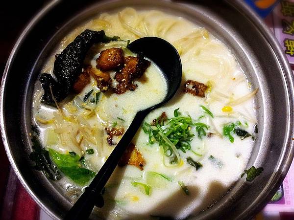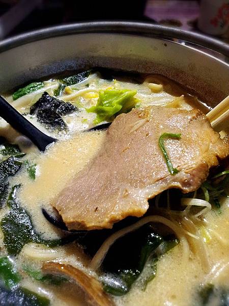 不過不打緊,因為湯頭是致勝的關鍵!!!熬煮到呈現乳白色的豚骨白湯,真的是超級濃郁!!!!濃到有點稠稠的,真的是沒喝過那麼稠的拉麵湯頭。
