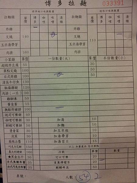 在平日的晚間用餐時間去,門口幾乎一定是一堆人在排隊等叫號,為了節省時間會先給菜單讓顧客先選好,店內的座位蠻多的,連地下一樓都是,但是桌子與桌子間的間距略擠,感覺伸長手就可以抓到隔壁的菜了...,當然說甚麼垃圾話也會被聽到...。或許是光顧的客戶太多,只好這樣擺設,一些餐具車就直接擺放在顧客進出會經過的地方,煮食的地方算是有點半開放空間,所以會不時聞到很多蒸煮炒炸的油煙味。另外最常被人負評的是,近年來店裡多加麵加湯加蔬菜甚至連加辣椒沾醬都要加錢。我覺得萬物齊漲的年代,店家讓顧客可以自行選擇要不要多加料,想要多吃一點就多付一點錢,而不是全面性的把菜單品項都調漲。(炸豬排炸豆腐這些還是有漲啦...)
