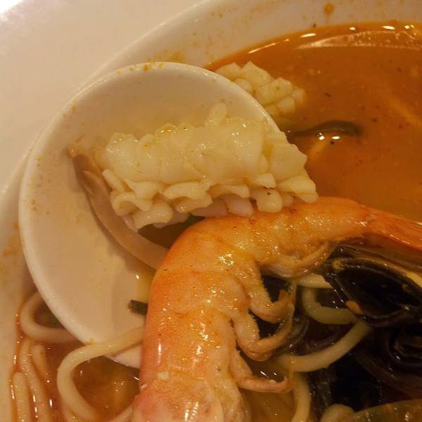 雖然配料只有兩尾蝦和一兩個花枝略嫌空虛,但是90元的價格算是可以接受的。