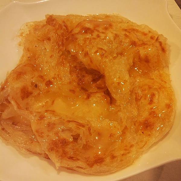 印度鬆餅,不知道為什麼叫鬆餅?可能上桌前有被抓的蓬鬆的樣子吧。口感像蔥油餅或是早餐店的抓餅,但是沒有蔥。這裡的口味是甜的,表面看起來油亮油亮的不是油,