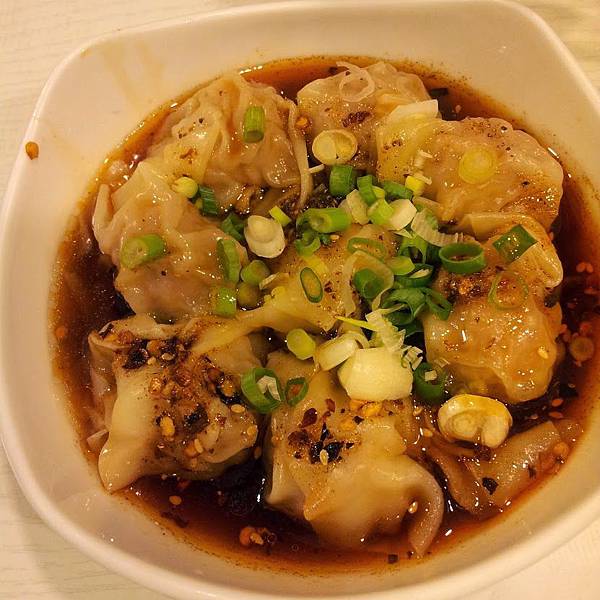 一樣是一道看起來紅通通應該會辣翻天的料理,結果吃起來除了微微的麻,辣度也是可以接受的程度。因為酸的味道蓋過麻跟辣了!!沒吃過那麼酸的抄手,我後來乾脆把清燉牛肉粑粑麵的麵條直接撈起來丟進去拌著吃!!超好吃的!!超開胃!!!建議店家可以拿這個佐汁來出一道乾拌麵,讚啦!!!餛飩本身包的蠻紮實的不是扁扁的那種,肉餡沒甚麼肥肉,但也沒特別好吃,就是一般的餛飩這樣。