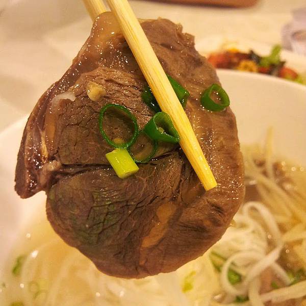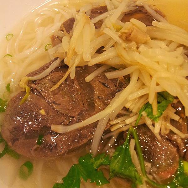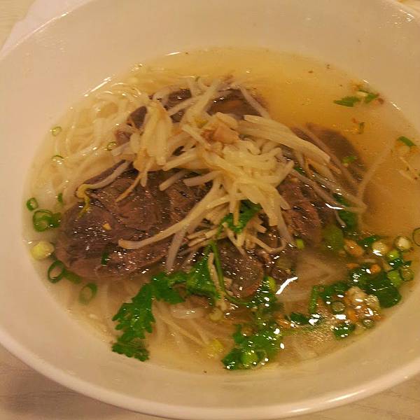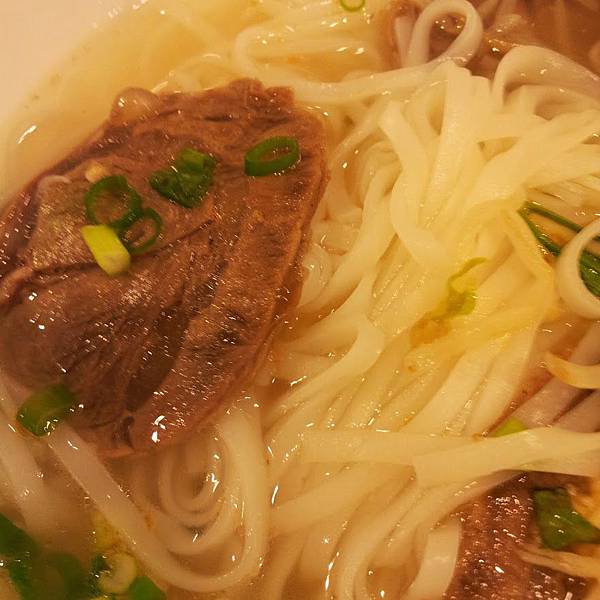 實在太好奇甚麼是粑粑麵,點了一碗來嚐鮮,第一眼看到粑粑麵,這熟悉的模樣,不就是越南河粉嗎@@? 迫不及待吃一口,欸還真的是蠻像的口感啊??但是越南河粉比較有嚼勁也比較有彈性,粑粑麵就沒有Q彈的口感,同樣都是米做的,為什麼會有這種差異呢?可能是煮的時間不同吧?牛肉片很好吃,看起來像是牛腱肉,但是其中一塊有點綠綠的= =?!我還是照樣吃下肚了,上網查了一下好像是正常的現象說是牛肌肉本身就有的金屬元素。